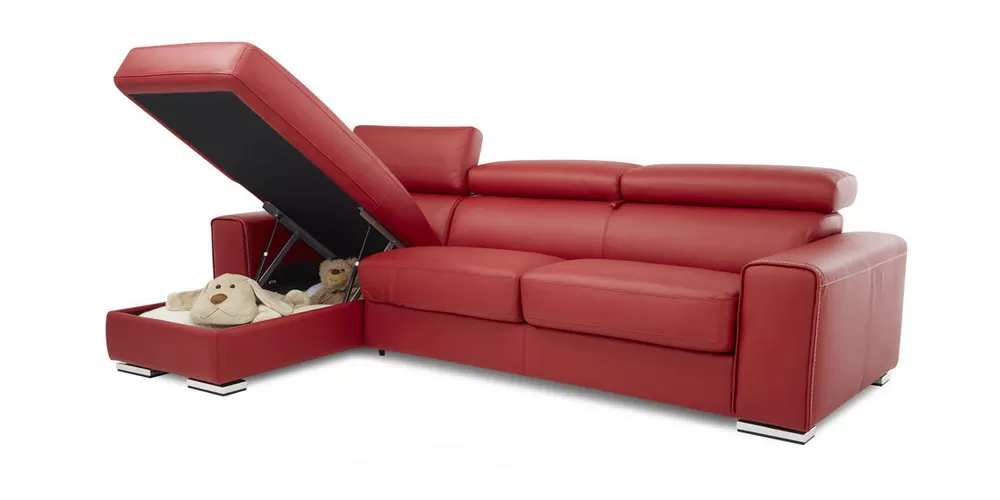 2. Δερμάτινος γωνιακός καναπές Tempo με αποθηκευτικό χώρο και κρεβάτι